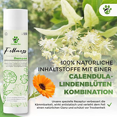 L'intera serie Golden Pets "Fellness" è stata progettata per un pH neutro ottimale per il cane. Questo è particolarmente delicato per la pelle del cane e per le mani delle persone, così il bagno diventa un'esperienza piacevole per tutti i partecipanti
