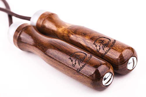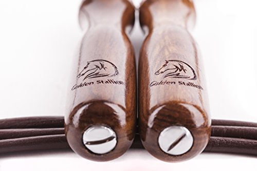 GUADAGNA IL MASSIMO RISPETTO: la corda per saltare Golden Stallion è fatta in legno e cuoio. Questi materiali naturali garantiscono la massima qualità e un aspetto lussuoso. Mentre altre corde per saltare si rompono dopo un intenso allenamento, Golden Stallion resiste.