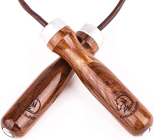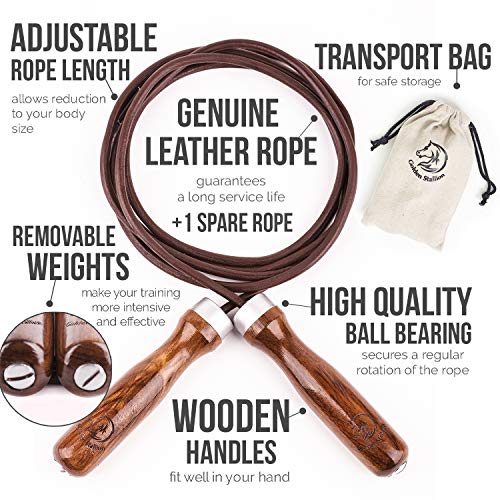 Golden Stallion - Corda per Saltare Regolabile con Cuscinetti a Sfera e Pesi - Corda per Saltare Sportiva in Cuoio