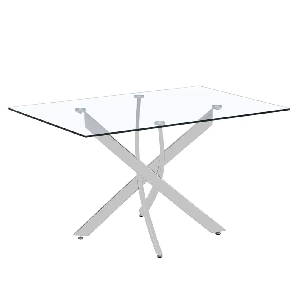 GOLDFAN Rectangle Tempered Glass Dining Table Morden Kitchen Table with Chromed Legs Chrome for Dining Room (Table Only)