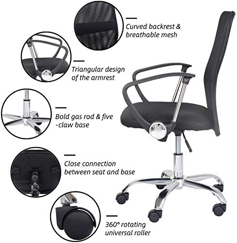 GOLDFAN Sedia da Ufficio Rotante può Sollevare la Sedia da Conferenza Sedia da Scrivania Regolabile con Schienale in Rete a Puleggia Universale, Nero