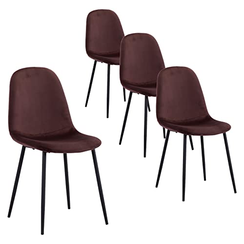 GOLDFAN Sedie da Pranzo Set 4 Sedie da Cucina Velluto Morbido Gambe in Metallo Robusto Sedile Morbido per Sala da Pranzo/Ufficio/Salotto, Marrone (Solo Sedie)