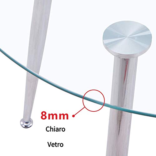-Materiale del prodotto: il piano del tavolo è in vetro temperato con uno spessore di 8 mm e il colore delle gambe del tavolo è argento