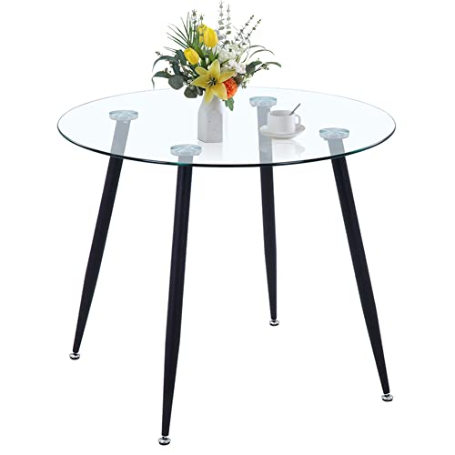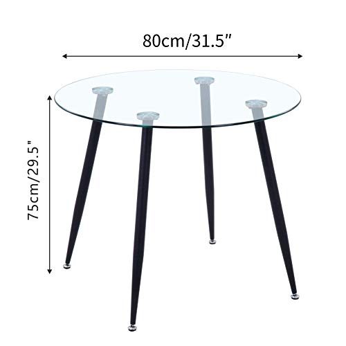 GOLDFAN Tavolo da Pranzo Rotondo Moderno, con Quattro Sedie con Schienale Alto in PU, Utilizzabile in Ristoranti, Uffici, Sale Riunioni, 80 x 80 x 75 cm (Nero, Vetro)
