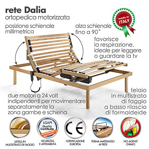 Rete a Doghe in Legno MOTORIZZATA + listelli ammortizzati, silenziata e progressiva Telaio in Legno di faggio naturale + ALZACUSCINO indipendente
