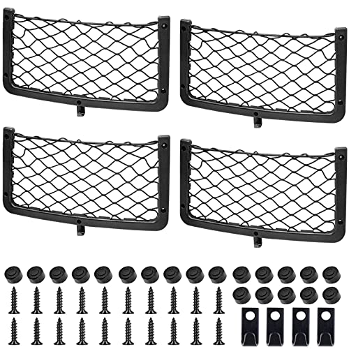Goldmiky Rete Portaoggetti Auto, 4 Pezzi Porta Oggetti per Auto, Rete Bagagliaio Auto Tasca Organizer con Viti, Universale Storage Mesh Net Organizers per Auto, Camper, SUV, Truck