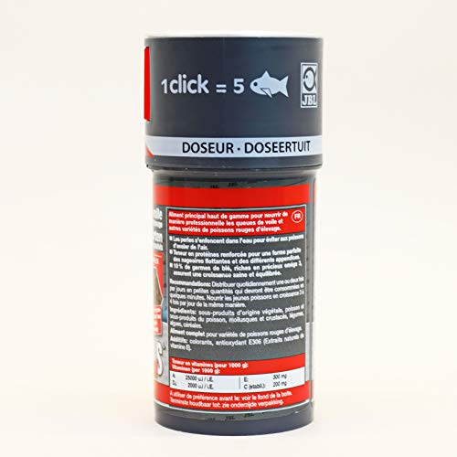 Contenuto della confezione: alimento base Premium con dosatore a clic per pesci acquari. Conservazione: 4 mesi dopo l'apertura. 1 x Clic alimenta 5 pesci Confezione di alta gamma con pellicola sigillante, conservazione 3 anni in confezione chiusa.