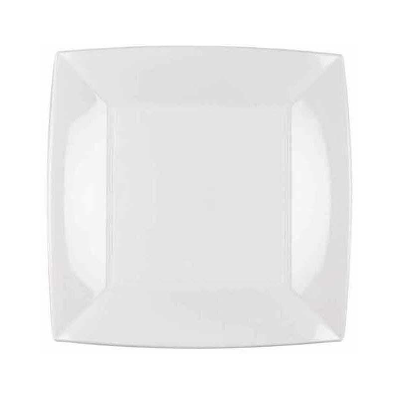 Piatti di plastica rigida quadrati riutilizzabili linea Usa&Riusa di Goldplast, colore nero coprente, 23x23 cm. Piatti lavabili e adatti al microonde dal design moderno ed elegante. Piatti lavabili e riutilizzabili realizzati in plastica PP 05 di alto spessore, che consente fino a 50 lavaggi in lavastoviglie e un notevole risparmio economico rispetto al monouso. Ottimi per l'utilizzo nel forno a microonde GOLDPLAST - Piatto dessert Nice bianco cm. 23 - pz.25