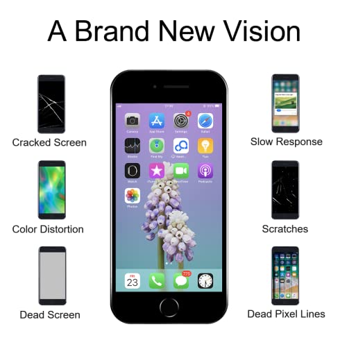 ☀【Contenuto della confezione】Schermo sostitutivo per iPhone 8/SE 2020 (lo schermo integrato non include il pulsante home, le cuffie e il gruppo della fotocamera anteriore, per cui è necessario trasferirli dallo schermo originale a quello nuovo), protezione dello schermo temperata, kit di alta qualità e istruzioni.