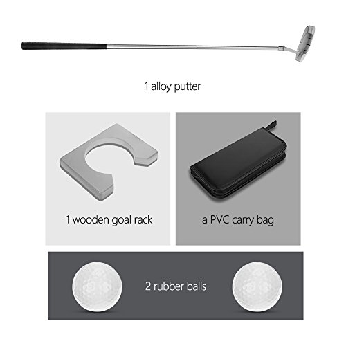 Gli Articoli Includono: Questa Coppa da golf include 1 putter in lega, 1 portaoggetti in legno, 2 palline di gomma e una borsa per il trasporto in PVC