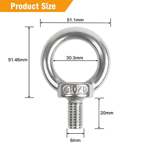Dimensioni: la lunghezza totale del bullone ad occhiello M12 è 71 mm, la lunghezza del filo è 20mm, il diametro interno dell'anello è 30 mm e il diametro esterno dell'anello è 51 mm.