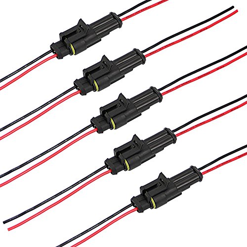 GOLRISEN 5 Kit 2 Pin Auto Impermeabile Elettrico Auto Impermeabile Connettore Kit di Connettori Elettrici a 2 Pin Impermeabile Connettore Isolato e Sigillato con Filo AWG per Auto Camion Marina Moto