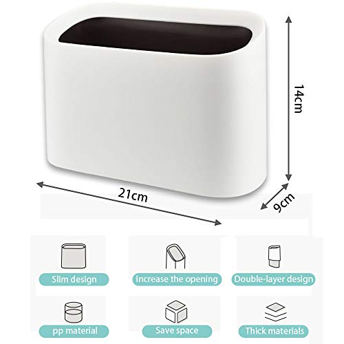 GOLRISEN Pattumiera mini con 100 sacchetti in plastica, pattumiera da tavolo staccabile, pattumiera bianca in PP, pattumiera da cucina, piccola pattumiera da ufficio, per vanità, bagno, cucina,