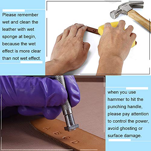 【Lettere e numeri staccabili】La punta del timbro adotta un design staccabile, puoi cambiare lo stile del timbro in base alle tue esigenze, combinare liberamente e contrassegnare facilmente il testo con un significato speciale. Bagnare la pelle con una spugna umida prima dell'uso, quindi colpire l'estremità del manico con un martello e controllare la potenza per evitare di danneggiare la superficie della pelle.