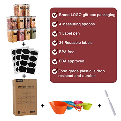GoMaihe 1.6L Contenitori Alimentari per Cereali, Contenitori Ermetici Alimentari Plastica con Coperchio per Alimenti 10 Pezzi, Utilizzato per la Conservazione di Pasta, Cereali, Muesli, Farina