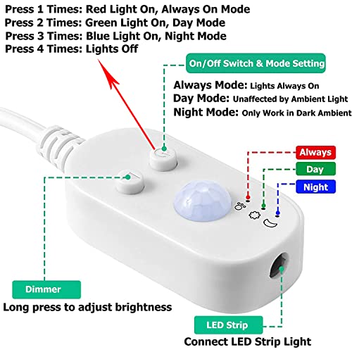【3 modalità opzionali】: modalità di illuminazione, modalità notte e modalità giorno, diverse modalità possono essere commutate tramite il pulsante di commutazione.