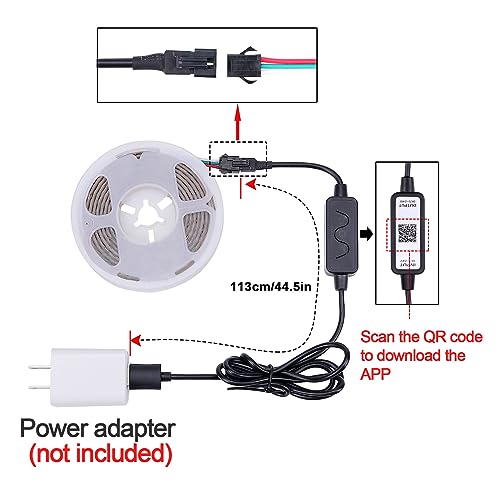 Viene fornito con un connettore JST-SM a 3 pin per una facile installazione. Il taglio ogni 1,2 cm non danneggerà il resto della striscia LED. (alimentatore non incluso)