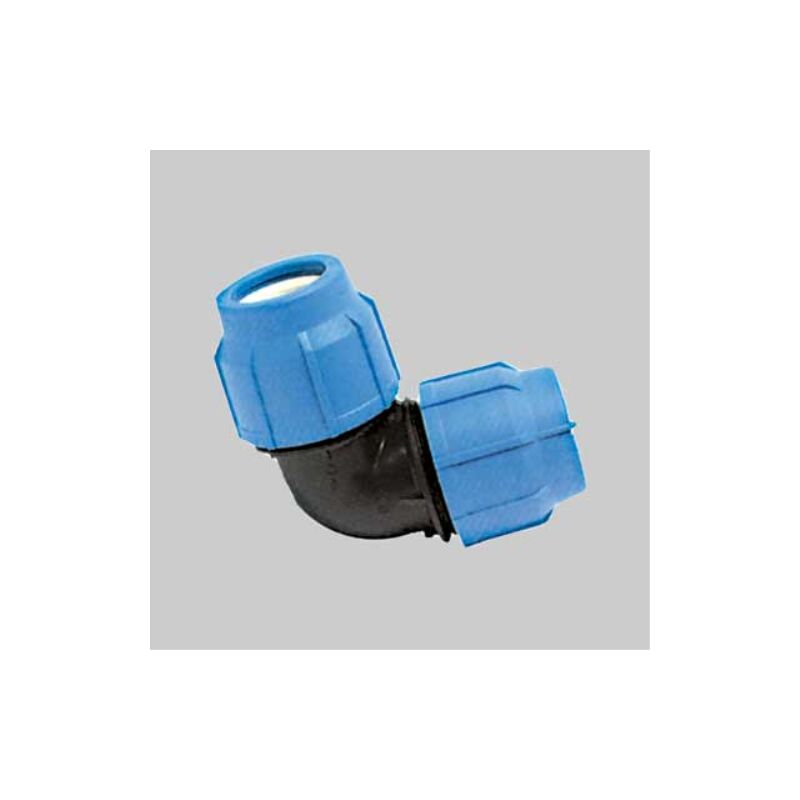A compressione in polipropilene, per la giunzione di tubi in PE fino a 16 bar (PN 16). Gomito a 90° ø 16x16 UNIDELTA Raccordi pp per tubi polietilene