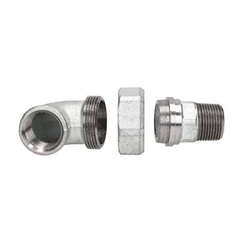 1/2" Gomito con bocchettone a sede conica, ghisa nero malleabile zincato, filettatura femmina, filettatura maschio, raccordo, pezzo di collegamento, colata stampata, MF