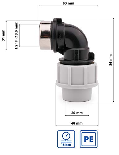 ✅ Raccordo a morsetto femmina con connettore a spina in polipropilene (PP) per tubi PE (polietilene). Un raccordo a compressione per sistemi idrici e tubi dell'acqua all'interno e all'esterno.