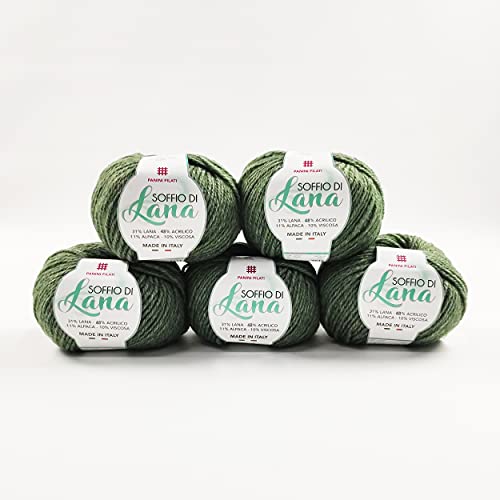 Gomitoli Soffio di Lana 50gr filato di 120 mt (132yds) ideale per i lavori a maglia, fai da te e patchwork con uncinetto o ferri del n. 4-4,5 Made in Italy (Muschio)