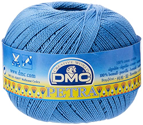 DMC, gomitolo di Filo Petra, 100% Cotone, Colore Blu, Misura 5
