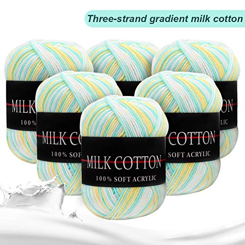 Gomitolo di Lana Filato Acrilica 6x50g Matasse di Filati acrilici Filati Bonbon Colori assortiti 100% acrilico per uncinetto Maglieria Confezione assortimento colorato Set di filati acrilici (Green)
