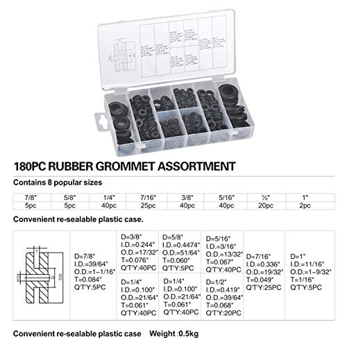 ❤Rubber Grommets Size - This set contains total 180pcs of different sizes rubber grommets, 8 Sizes;