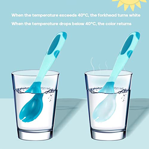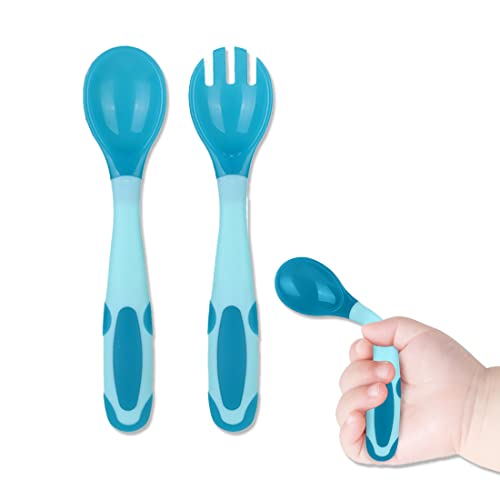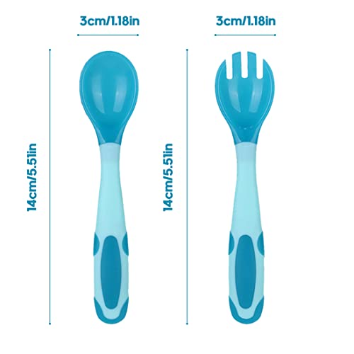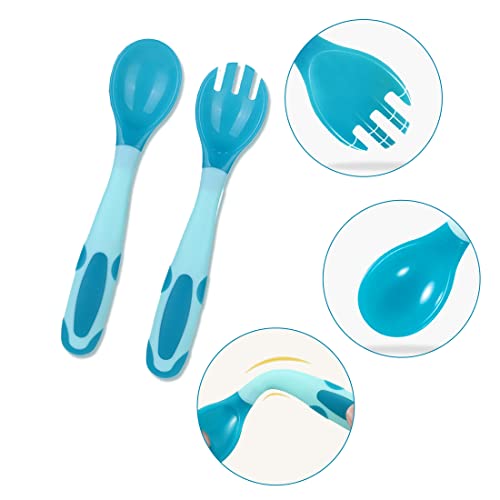GONDNOWS Set di Posate per Bambini,2pcs Cucchiaio E Forchetta Da Addestramento Per L'alimentazione Del Bambino,Cucchiaio Di Apprendimento Flessibile Resistente Al Calore E Facile Da Impugnare(blu)