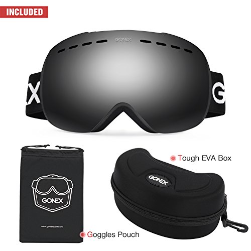 Gonex Goggles Snowboard Occhiali da Sci a Doppia Lente grangolare sferica Protezione UV400 Maschere con Visione Chiara Ampia Anti-Fog Anati-Vento con Goggle Case (Nero)