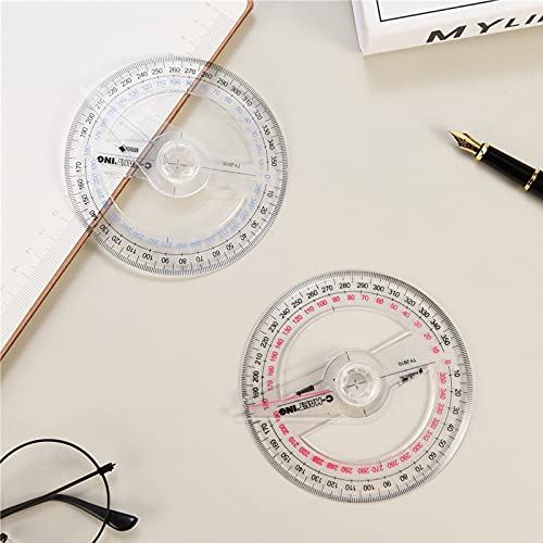 Goniometro da 360 grad,2 pezzi righello goniometro trasparente strumento di misurazione modello strumento di misurazione dell'angolo cercatore braccio oscillante righello angolare per scuola (Clear01)