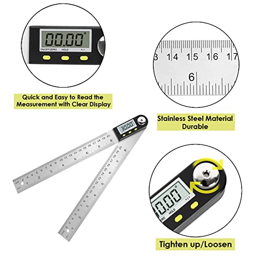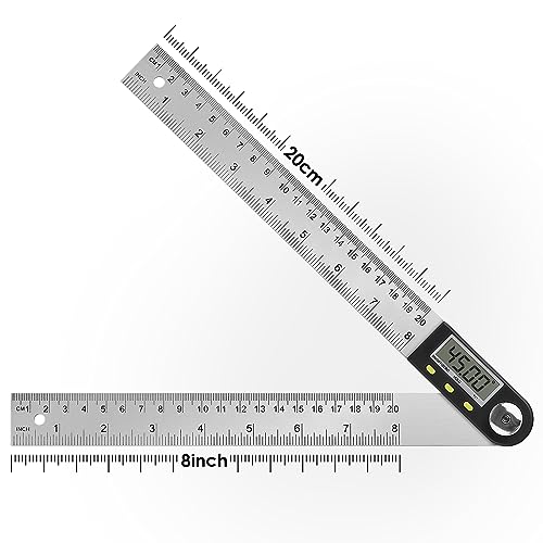 Goniometro, righello angolare da 200 mm/8 pollici, in acciaio inox, misurazione angolare a 360°, display LCD, con bilanciamento zero e funzione di blocco per lavori di legno, costruzione, lavori
