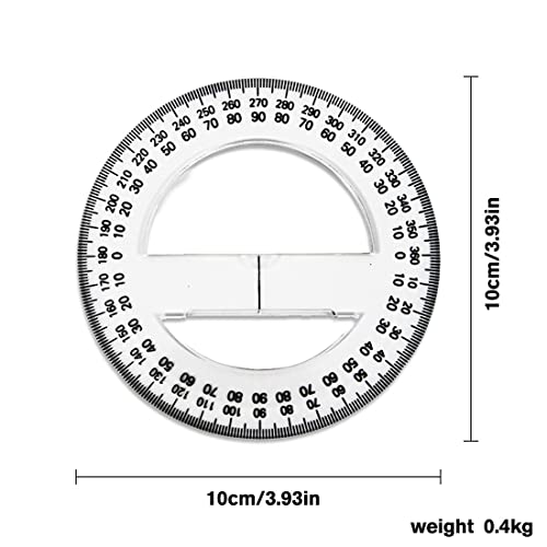 Specifiche del prodotto: materiale: plastica, diametro opzionale: 10 cm. Lista della confezione: 1 righello goniometro a 360 gradi.