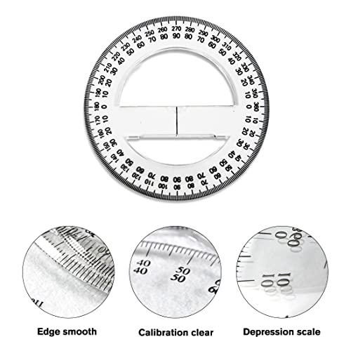 Facile da disegnare e regolare: di piccole dimensioni, leggero, facile da riporre. Il colore trasparente ti rende più facile misurare e puoi vedere i numeri e le lettere a pagina attraverso il goniometro.