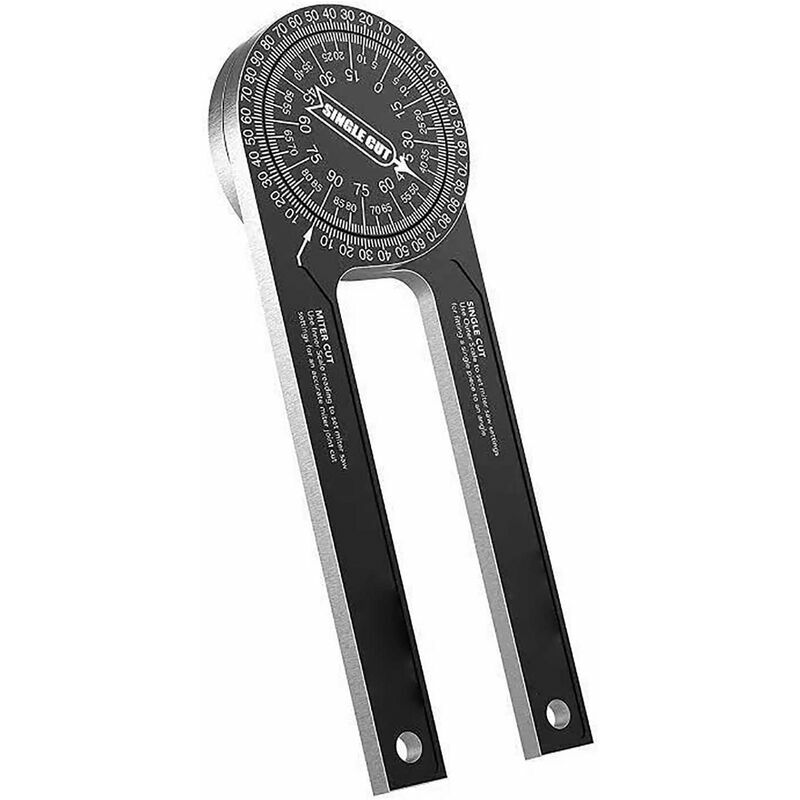 GONIOMETRO 360: Dispone di scale incise di precisione di facile lettura. Non preoccuparti di usura o segni di abrasione. I segni bianchi su sfondo nero sono più facili da leggere e i numeri possono essere chiaramente distinti anche in condizioni di luce intensa. MISURATORE ANGOLARE ORIZZONTALE: dati accurati riducono lo spreco di tempo e materiali. Due scale misurano il tuo angolo di lavoro per gli angoli interni/esterni, permettendoti di mettere a punto l'angolo di taglio/taglio semplice sulla troncatrice. il goniometro per sega è perfetto per te. È adatto per lo stampaggio a corona, il taglio inclinato, la carpenteria, le tubazioni, la lavorazione dei metalli, ecc. CALIBRO DELL'ANGOLO DI POSIZIONAMENTO: il design ruotabile a 360° consente di misurare l'angolo speciale con questo goniometro per troncatrice, "O" il design della forma garantisce una lettura accurata negli angoli interni/esterni, l'anello di gomma integrato per evitare il rumore e i perni funzionano molto bene con un