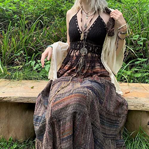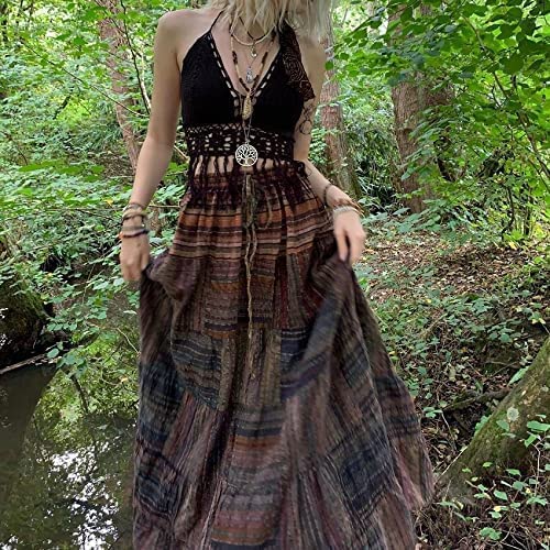 Caratteristiche: maxi gonna da donna in stile boho vintage, motivo a quadri e stampa floreale, gonna a pieghe. Vita alta, gonna midi y2k, gonna midi in stile bohémien per donne, matita, y2k, gonna lunga in stile streetwear.