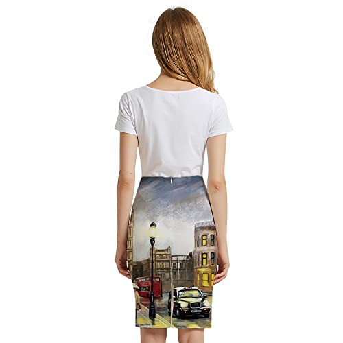 Gonna A Pacchetto Stampata - City Street View Stampa 3D Plus Size A-Line Bodycon Gonna, Floreale Casual A Vita Alta Spacco Traight Elasticated Skirt, Adatto Per Una Varietà Di Scene Da Indossare, S