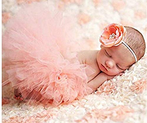 Gonna Tulle neonata - Fascia per Capelli - Fiore - Completo - Foto - tg Unica Rosa Confetto - Idea Regalo Natale e Compleanno