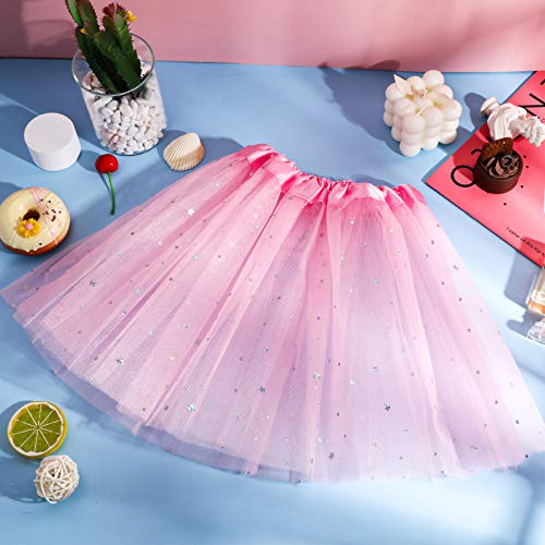 Gonne Tutu Tulle a 3 Strati da Ballo Stelle e Paillettes per Bambine (Rosa)