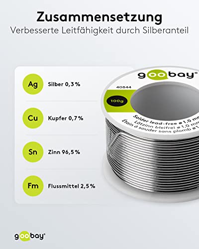 Goobay 40844 - Stagno per saldatura senza piombo, ø 1, 0 mm, 100 g, con una percentuale di argento (Ag) dello 0, 3%