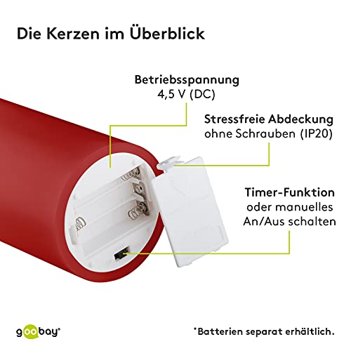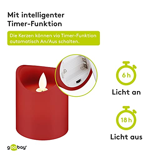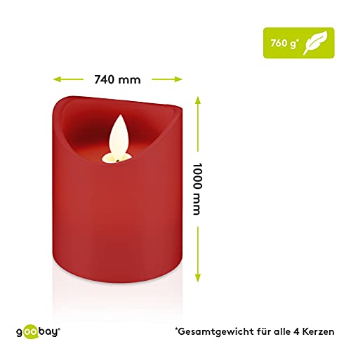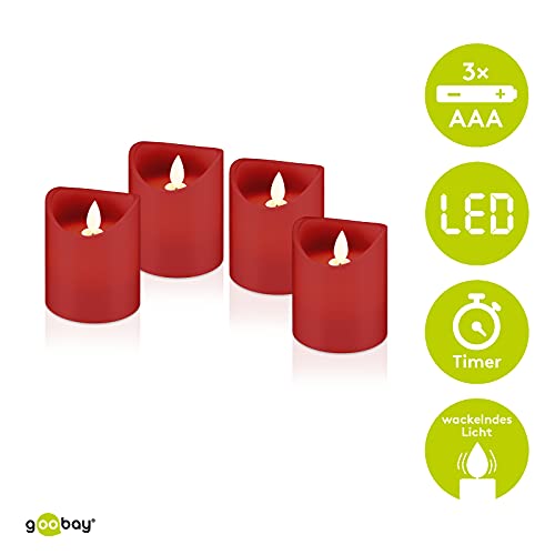 Goobay 44591 - Set di 4 Candele a LED con Funzione Timer, Luce Calda a LED, in Vera Cera tremolante, Candele elettriche, Candele dell'Avvento, Colore: Rosso