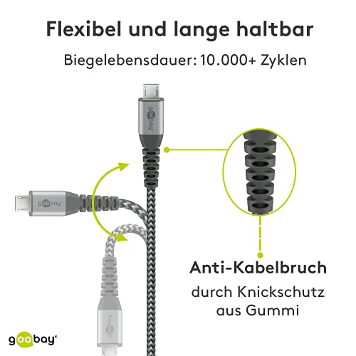 Goobay 49273 Cavo Micro USB - Cavo in tessuto extra robusto con connettori in metallo - 0,5 m, grigio