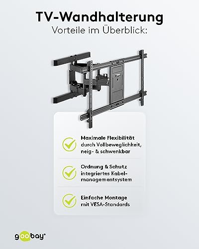 Goobay 49746 - Supporto da parete per TV Pro FULLMOTION (XL) da 43" a 100", completamente mobile, orientabile/inclinabile, 60 kg, standard Vesa