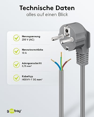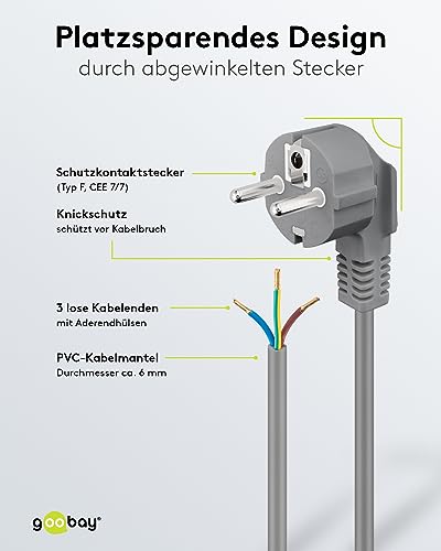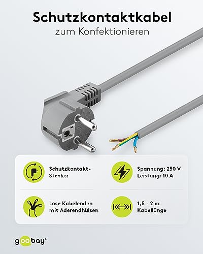 Goobay 50082 Cavo Alimentazione, Grigio, 2m Lunghezza del Cavo