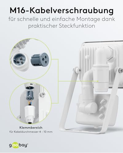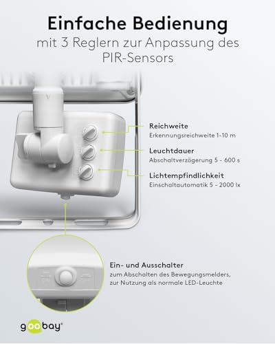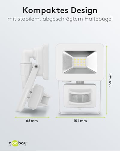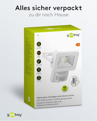 Goobay 53878 - Faretto LED con sensore di movimento, per esterni, 10 W/PIR, IP44, luce bianca neutra, 850 lm/LED, montaggio a parete, faretto da giardino, bianco