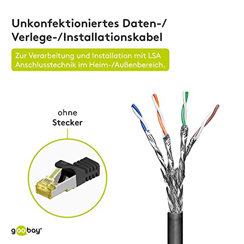 Goobay 57197 CAT 6 Cavo di Rete per Esterni, S/FTP (PiMF), Nero, 100m Length