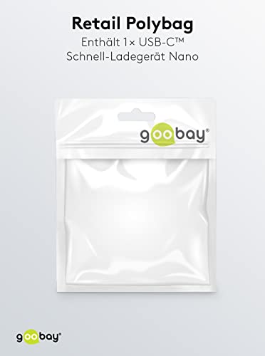 Goobay 59358 Caricabatterie USB-C Nano, Alimentatore USB-C Power Delivery da 20 W per iPhone 12/12 Mini/12 Pro/MAX, iPad Pro, Magsafe, AirPods Pro, Samsung Galaxy Series, Google Pixel 5/4/3