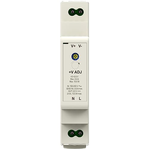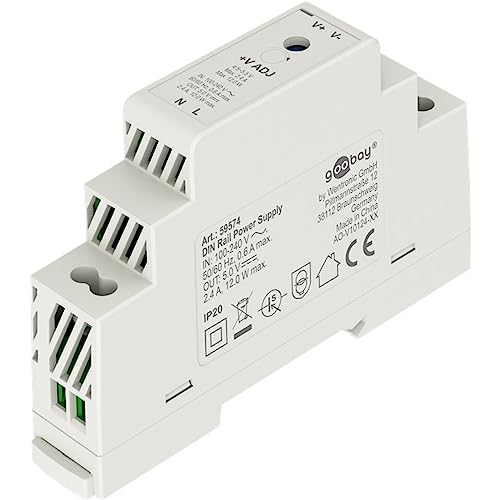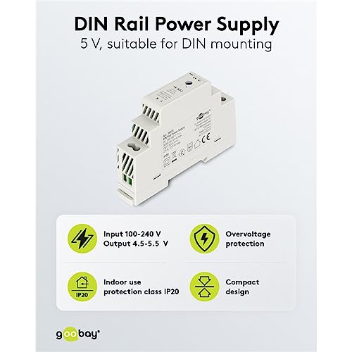 Goobay 59574 - Alimentatore di rete 5 V, trasformatore ideale per il funzionamento di sistemi di sorveglianza e accesso/trasformatore campanello 5 V, citofono/campanello DIN Rail 2,4 A e 12 W