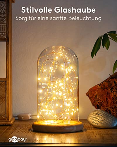 Goobay 60340 Campana in vetro con micro catena luminosa LED/lampada decorativa/luce calda e rilassante/illuminazione festiva per la decorazione di interni/legno vero/con interruttore