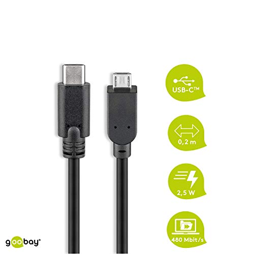 Goobay 67895 Cavo USB 2.0 da USB-C a Micro B 2.0, Nero, 0.2 m Lunghezza del Cavo